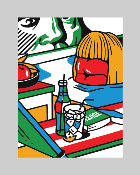Бумага Pur Coton Cocaine 350 г/м. Размер в раме 41 х 31 см. Рама из оргстекла в 4х цветах. Способ печати: шелкография. Перед вами уменьшенный авторский принт в раме. Работа пронумерована и подписана автором. Фирменная печать конгрев.