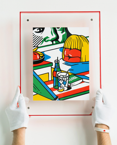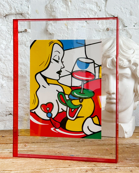 красная рама 2 вида принта в раме (в 4х цветах) «Женские игрушки» и «Молодость» Бумага Pur Coton Cocaine 350 г/м. Размер в раме 41 х 31 см. Рама из оргстекла в 4х цветах. Способ печати: шелкография. Перед вами уменьшенный авторский принт в раме. Работа пронумерована и подписана автором. Фирменная печать конгрев.
