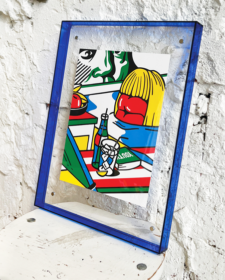 Бумага Pur Coton Cocaine 350 г/м. Размер в раме 41 х 31 см. Рама из оргстекла в 4х цветах. Способ печати: шелкография.